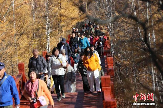 “9月1日至29日,阿尔山国家森林公园接待旅游人数突破3万人次,同比增长60%。”阿尔山国家森林公园副总经理武慧鹏介绍,“由于降水量适中、气温下降变缓,使今年的秋天‘变长’了,而且叶子黄得发光。” 登上驼峰岭天池观景台,各地游客一览林海鎏金的秋日风光,争相拍照做起“画中人”。南京游客李双双一家三口自驾而来,“我们没订上机票,就选择自驾。确实不虚此行,这样的美景好像只在书中见过。” 据阿尔山机场消息,9月份以来,飞抵航班上座率呈急速上涨趋势。9月18日,单日飞抵阿尔山的航班旅客人数同比上涨372.72%;国庆节假期,北京至阿尔山的航班已全部订满。