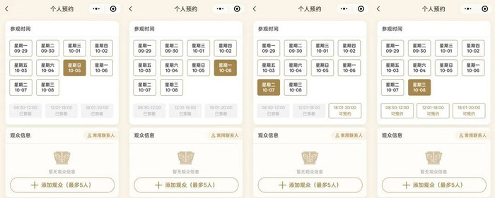 | 转自:成都发布 国庆中秋假期即将到来 成都周边多个景区、博物馆 发布延时开放、限流公告 其中部分时段门票已约满、售罄 未预约勿前往 部分时段仍有余票 想去的小伙伴抓紧预约 一起来看 👇 都江堰青城山景区 为给游客提供安全、顺畅的游玩体验,国庆中秋期间,都江堰景区每日最大承载量60000人,青城山(前山)景区每日最大承载量30000人,景区建议游客朋友们提前计划出行时间,尽量错峰出游,提前网络购票。 成都天台山旅游景区 国庆中秋假期将至,为保障游客都能安心赏山水、惬意度佳节,国庆中秋期间天台山景区每日最大承载量为16600人,建议游客朋友们提前规划出行时间,错峰出行,提前预约门票。 长秋山森林公园 本园实行免费预约制,游客需提前通过官方渠道预约。本次国庆假期呈现为首开区,单日限流1万人,预约通道现已开启。 时段限流:(具体以公园公告为准) 上午8:30-12:00(限5000人) 下午12:00-18:30(限5000人) 都江堰中华大熊猫苑 都江堰中华大熊猫苑“国庆、中秋假期”每日游客接待总量为12000人。其中,网络购票游客限4000人(对应入园时间08:30-17:00);现场购票限4000人(上午限量2000人,对应入园时间08:30-13:00,下午限量2000人,对应入园时间13:00-17:00,停止售票时间16:30);团队限4000人(上午限量2000人,对应入园时间08:30-13:00,下午限量2000人,对应入园时间13:00-17:00)。 都江堰中华大熊猫苑国庆、中秋假期实行实时限流措施。园内游客瞬时最大承载量为4500人,瞬时游客量达到该限量时,将暂停检票入园,待游客量下降后重启检票入园。 成都博物馆 截至发稿时,成都博物馆10月2日-4日已约满,10月1日、10月5日-8日还有余票。
