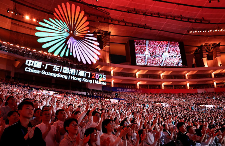 广东省体育代表团、香港特别行政区体育代表团、澳门特别行政区体育代表团在入场仪式上共同入场。新华社记者赖向东摄