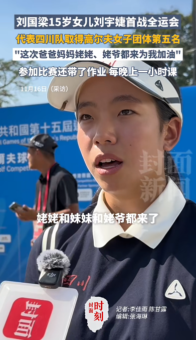 | 11月16日,刘国梁女儿刘宇婕代表四川队首次征战全运会高尔夫球比赛,取得女子团体第五名的成绩。 刘国梁也现身比赛现场,为女儿加油。刘宇婕还透露,自己参加比赛还带了作业,每天晚上一个小时上课或者写作业。