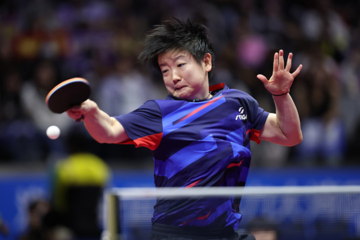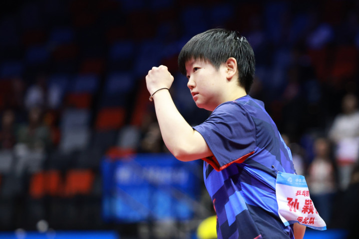 11月16日,河北队选手孙颖莎在比赛中。新华社记者陈斌摄