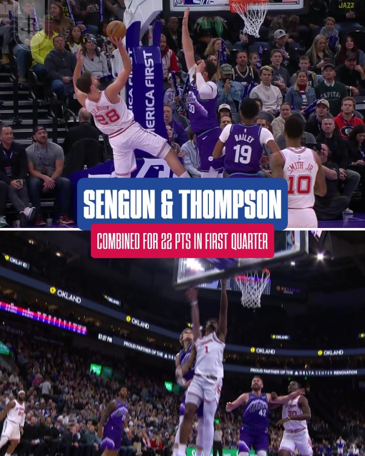 火箭队官方ins报道。阿尔佩伦·申京和阿门·汤普森在首节比赛中各得11分!