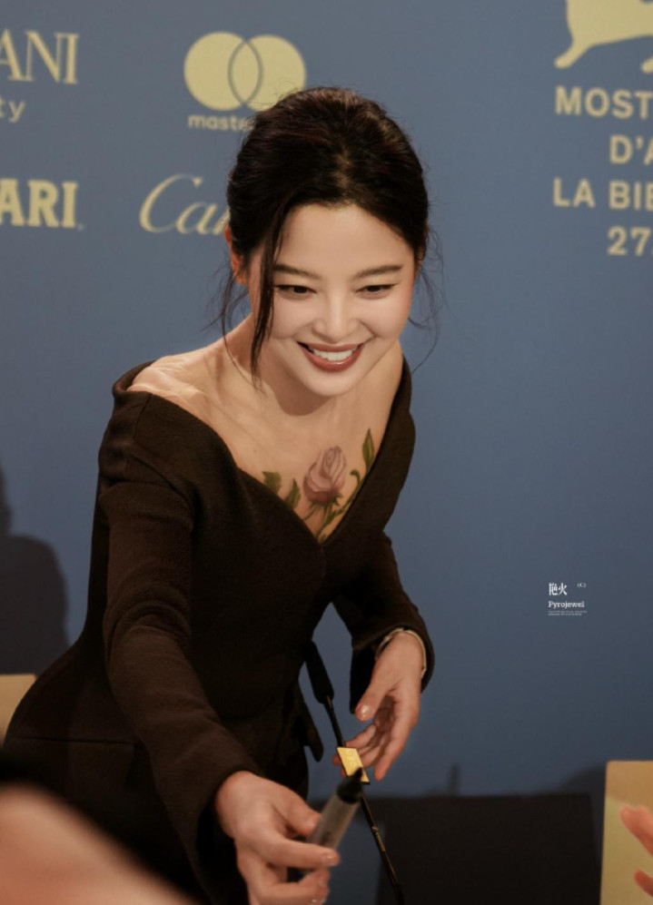 | 辛芷蕾大概是这几年,中年女演员中上升“极快”的女演员之一了。她出演了《繁花》,合作王家卫,吸了很多的粉丝,她的骨相很能扛得住镜头。 这一次的她又带着自己的作品《日挂中天》来到了威尼斯。 在记者会上,39岁辛芷蕾坐在那里美得很突出,她的骨相很绝很扛打,颧骨与下颌线线条清晰,外媒的镜头之下,辛芷蕾仍旧能够扛得住。