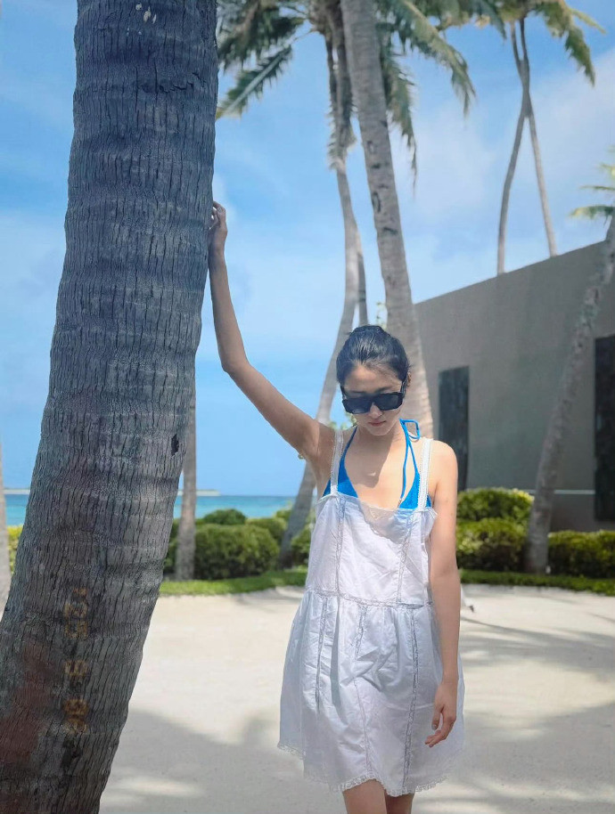 关晓彤正面出镜,她单手扶着大树凹造型。从这个视角可以清晰看到,关晓彤的身材是真的很哇塞诶。虽然她还穿着白色的吊带裙,但高挑零赘肉的曲线已经藏不住了。而且关晓彤从出道到现在,真的就没有胖过,每次出镜都是纤瘦苗条,此次穿上泳装更是将身材优点完美展示出来。 此次出镜,关晓彤的巴掌脸小巧精致,细胳膊细腿的更是养眼至极。不得不承认,关晓彤在生活中真的好自律,将身材管理得太棒了。
