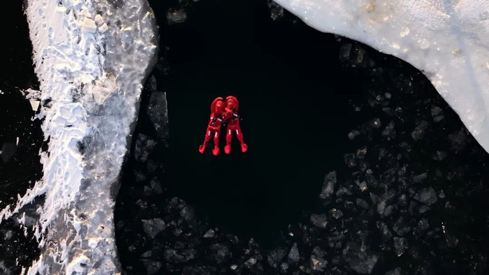 体验服务涵盖 全套专业冰浮装备 暖心的热饮茶歇及舒适休息区 同时 俱乐部引入 无人机航拍等现代化技术 可以实时记录 游客漂浮的精彩画面