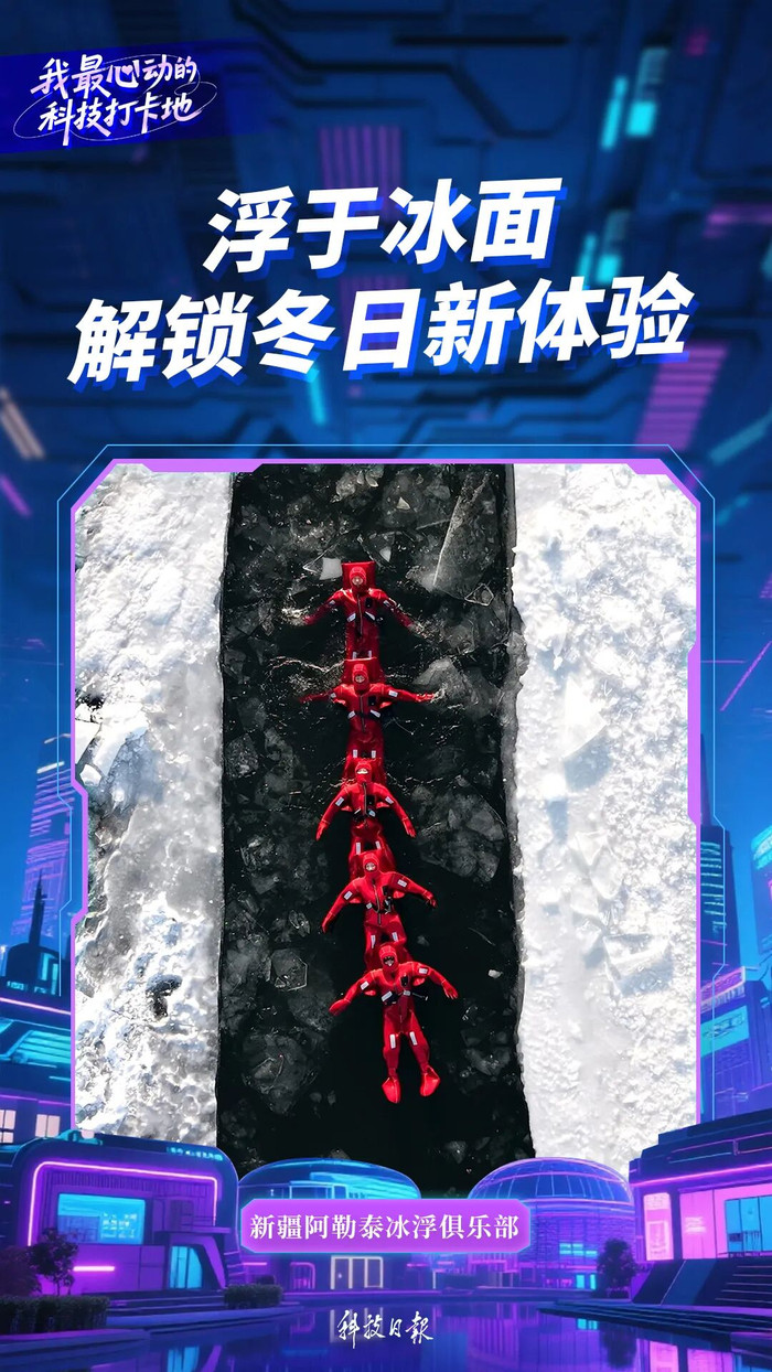 打卡推荐 新疆阿勒泰冰浮俱乐部 特色:特色潜水服让你躺在冰湖“不怕冷”,无人机航拍记录动人时刻 地址:新疆阿勒泰市阿苇滩镇雪庐民宿附近 预约:16692636217 阿勒泰市位于新疆北部 坐落在阿尔泰山南麓 全年雪季超过6个月 拥有世界级的冰雪资源 2018年9月被国家气候中心 授予“中国雪都”国家气候标志 成为游客的滑雪胜地 近期 随着阿勒泰冰浮俱乐部开业 游客又多了一项奇妙的冰雪体验