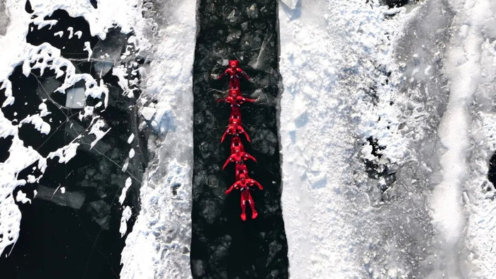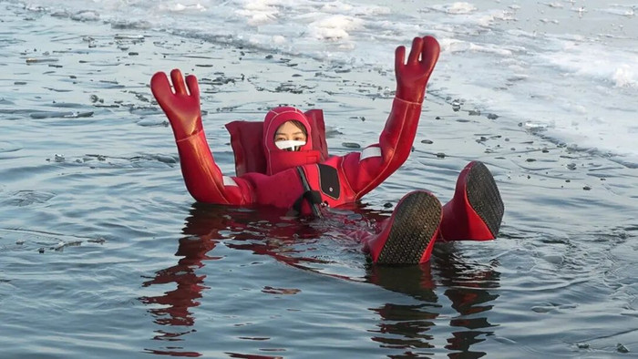 参与者将在专业人员保障下 身着充满“黑科技”的特制装备 在纯净的冰封湖面上 亲身感受 浮于冰面的独特魅力 项目设置了多个体验时段 其中傍晚的“蓝调时刻” 将阿勒泰冬季的静谧 与壮美展现得淋漓尽致 是创作冰雪大片的绝佳时机