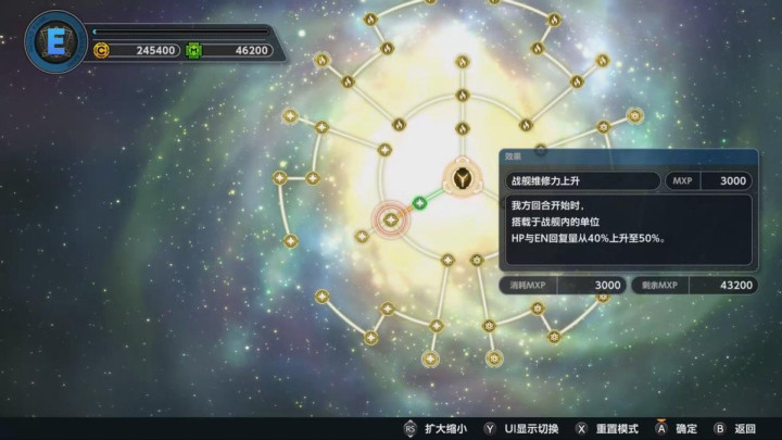 第二个新系统《STG记忆开放》,它的用法也非常简单,玩家可以通过消耗经验值,在此选择性强化攻击、防御、资源增益、辅助连结等各种方向的能力,注意这种强化不仅永久有效,而且它是针对于部队整体的效果,大致相当于RPG游戏中常见的技能树,这样的设计看似并不稀奇,但在机战系列中就有着它的特殊意义,一定程度上改善了机体成长差异可能过大的问题。