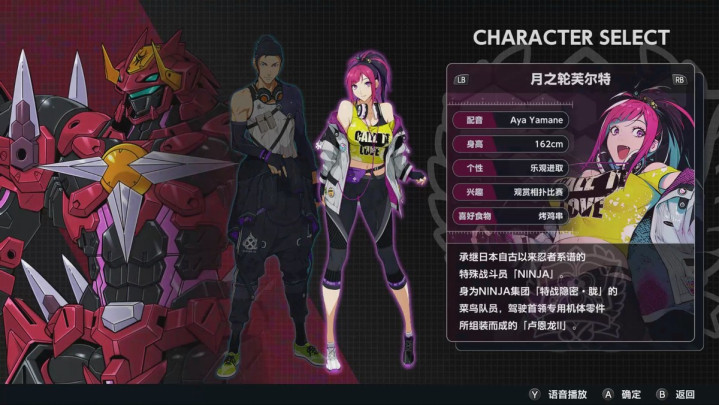 在这套故事背景之下,玩家要扮演的主角,是一个出身于忍者集团的原创驾驶员,你在剧情中的目标,就是要辅助年仅14岁的艾尔登特女主人艾蒂卡。主角自身根据性别选择的不同,各有一套默认姓名和机体颜色,机体本身设计也顺应人设而有着浓厚的忍者元素。