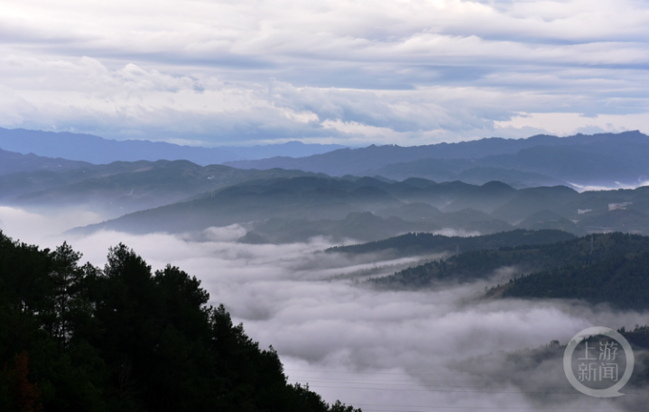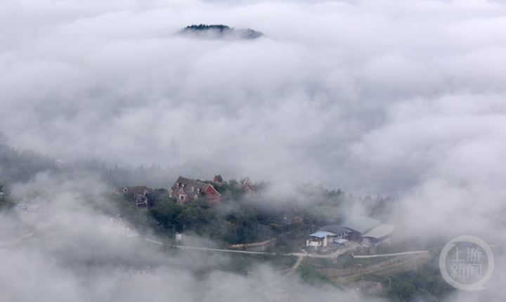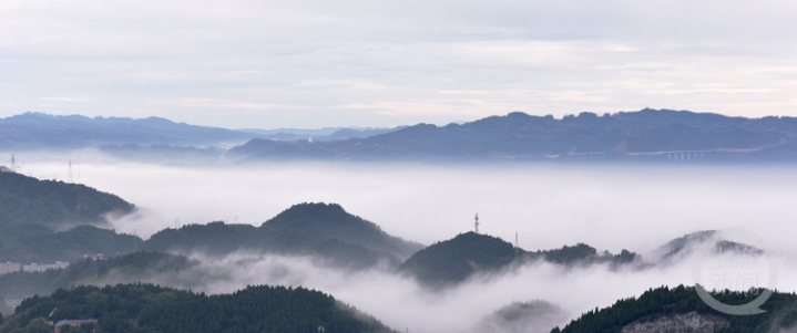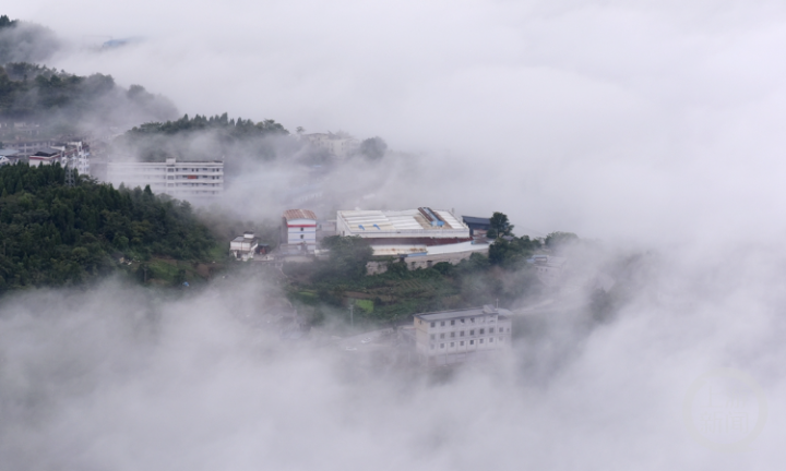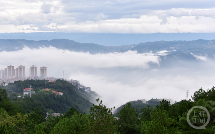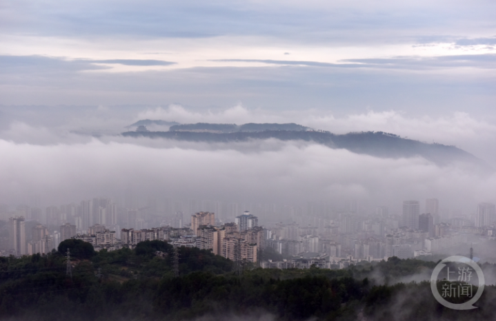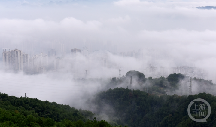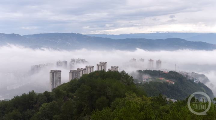 10月1日,重庆市涪陵区,城市建筑被清晨的云雾包裹,仿若云端仙境。
