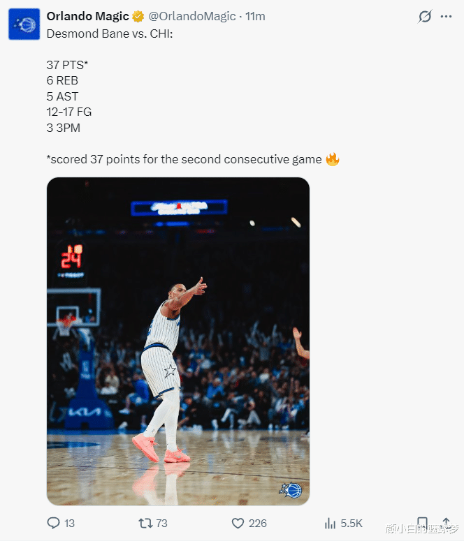 北京时间12月2日,魔术125-120逆转公牛拿到三连胜。这场比赛魔术一度落后公牛15分之多,没想到最终魔术还能逆转,尤其是末节贝恩单节18分非常炸裂,贝恩此役又拿到37+的数据成为魔术赢球第一功臣。